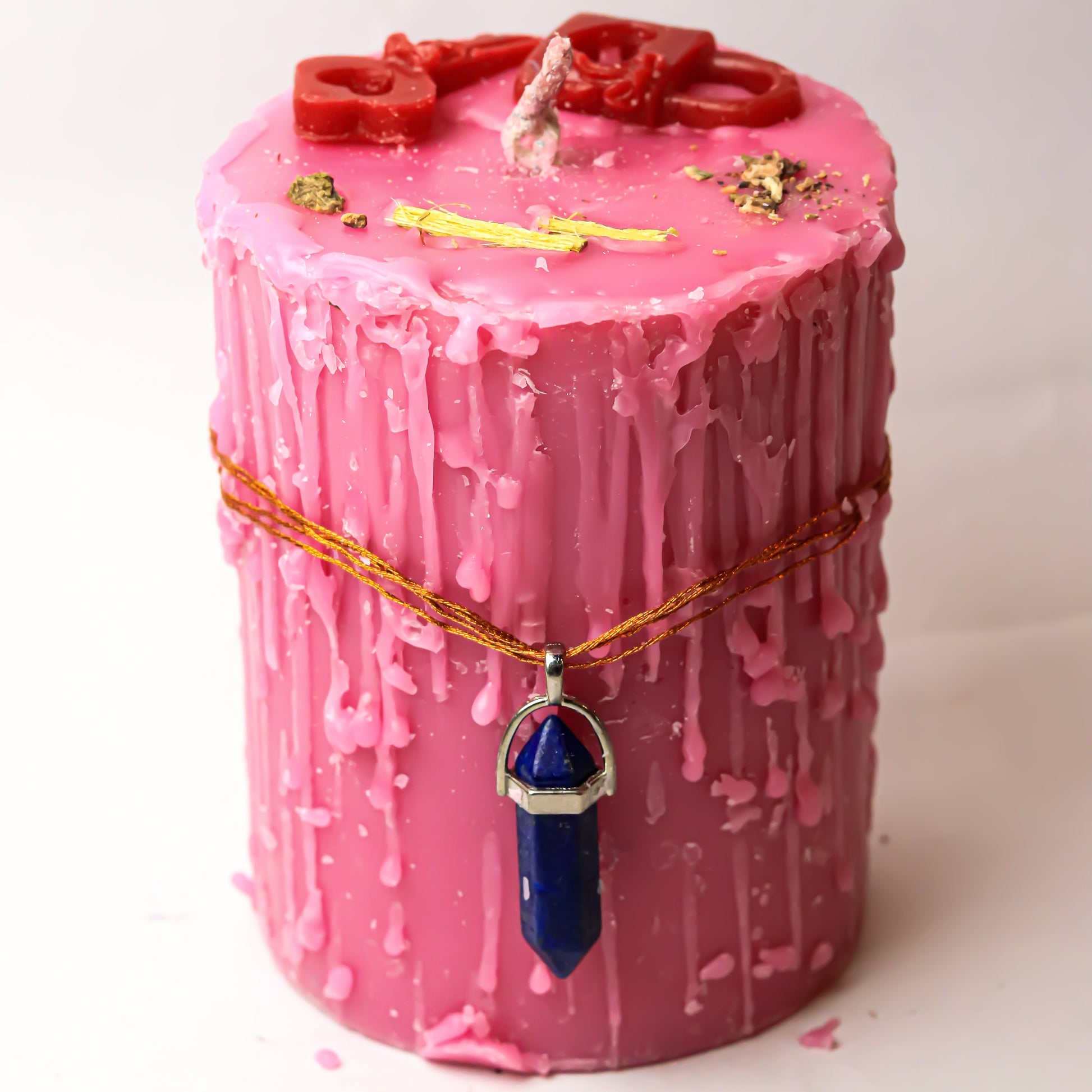 This candle is about love, magnetism and reconciliation with the herbs master root, licorice and high john!